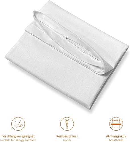 sleepling Komfort 100 Lot de 2 Housses de Couette Evolon Encasing | Housse Anti-acariens | Personnes allergiques à la poussière Domestique | Lavable à 95 °C | Fabriqué Allemagne | 135 x 200 cm, Blanc