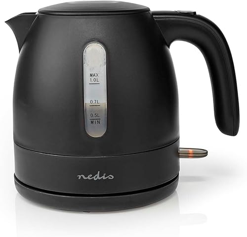 NEDIS Bouilloire électrique, 1.0 l, Rotatif à 360 degrés, Élément Chauffant dissimulé, Contrôleur Strix, Protection Contre l'ébullition KAWK300EBK
