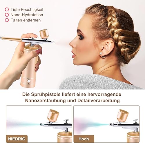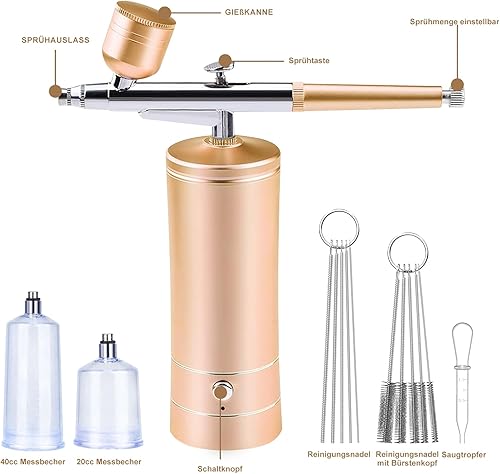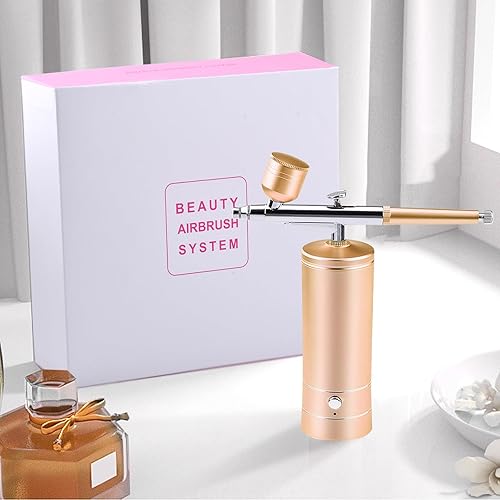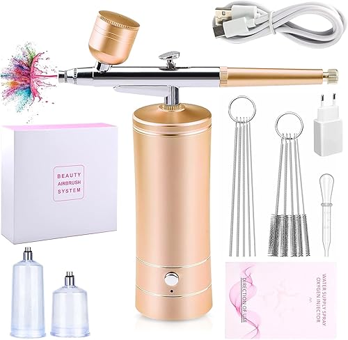 Daakro Kit aérographe sans fil avec compresseur d'air, portable, sans fil, mini brosse à air rechargeable pour maquillage, décoration de gâteau, nail art, tatouages et peinture du visage (doré)