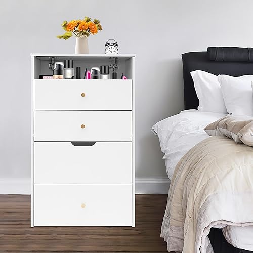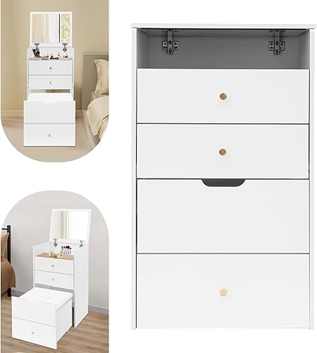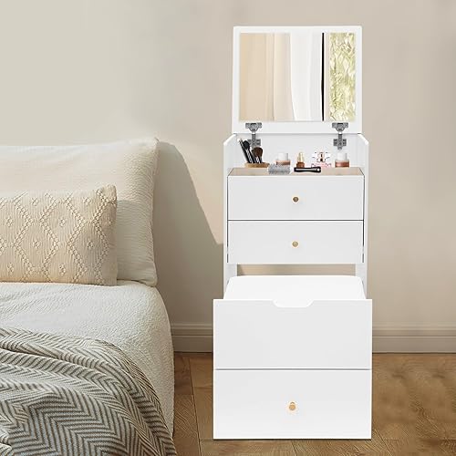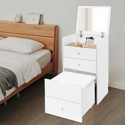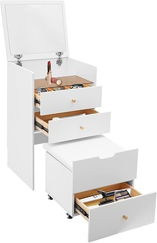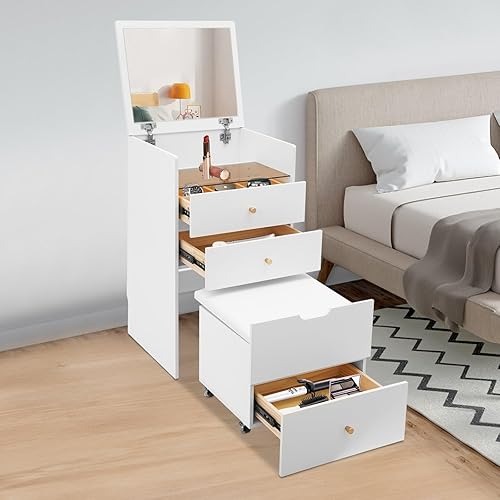 panfudongk Coiffeuse avec miroir et éclairage - Table de maquillage moderne avec tiroirs et roues universelles - Coiffeuse compacte pour chambre à coucher - Avec chaise et miroir - Blanche