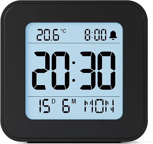 LATEC Reveil, Réveil Numérique à Piles avec Température, Alarme, Snooze et Rétroéclairage pour Voyage, Chambre et Bureau (Batteries Incluses)