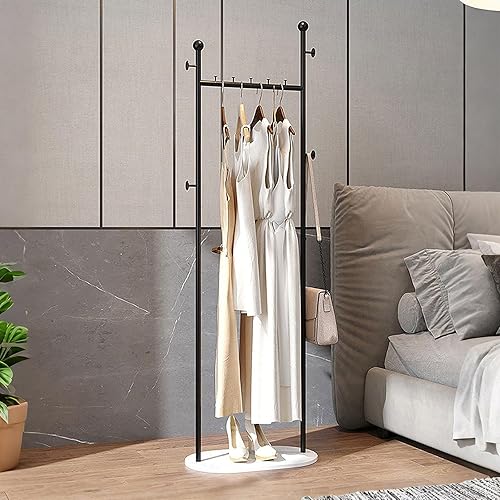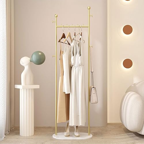 MMissll Métal Portemanteau sur Pieds pour Entrée Support à Coucher sur Pied avec 4 Crochet Penderie Vestiaire Portant à Vêtements avec Dalles de Roche Lourdes, jusqu'à 60 kg, 45x28x170CM (Doré)