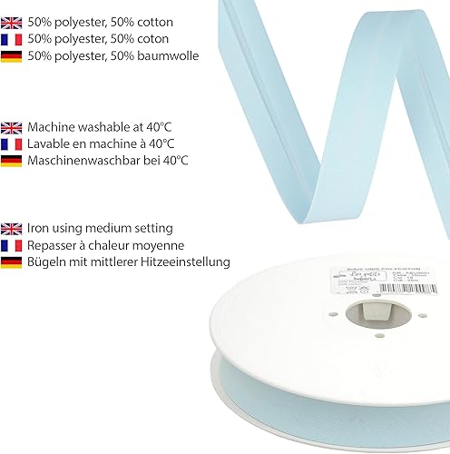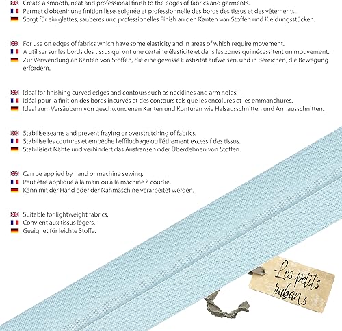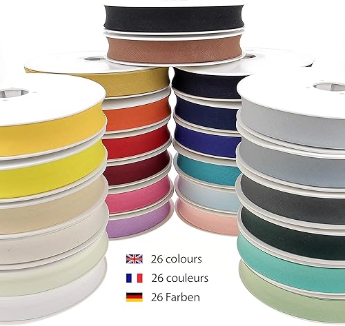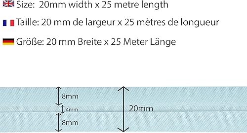 Les Petits Rubans Biais de Couture – 20 mm de large,plié 10 mm,rouleau de 25 m,50% coton 50% polyester,bordure pour couture,banderoles,tissus d'ameublement,meubles,passepoils,vêtements,couvertures