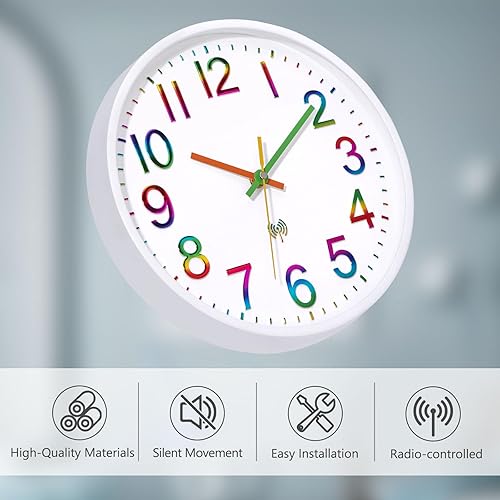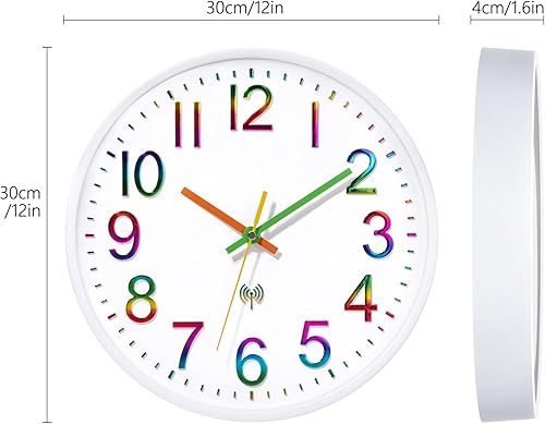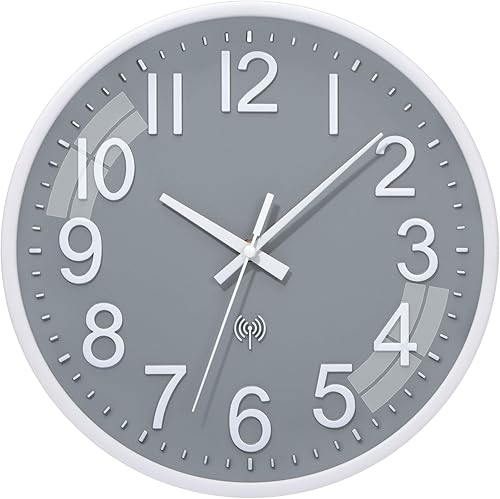 ACCSHINE Horloge Murale silencieuse Radio pilotée, Design Moderne, Cuisine Vintage, 30 cm de diamètre, Grande, numérique, Salon (Blanc)
