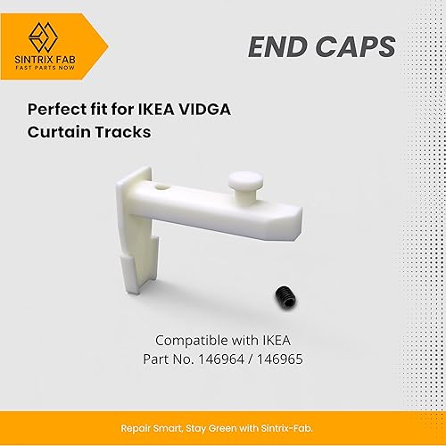 Sintrix-Fab Lot de 2 embouts avec vis – Compatible avec rails de rideaux IKEA VIDGA – Pièce de rechange pour pièce n° 146964/146965 – Bouchons de rail de rideaux flexibles pour camping-car, douche et