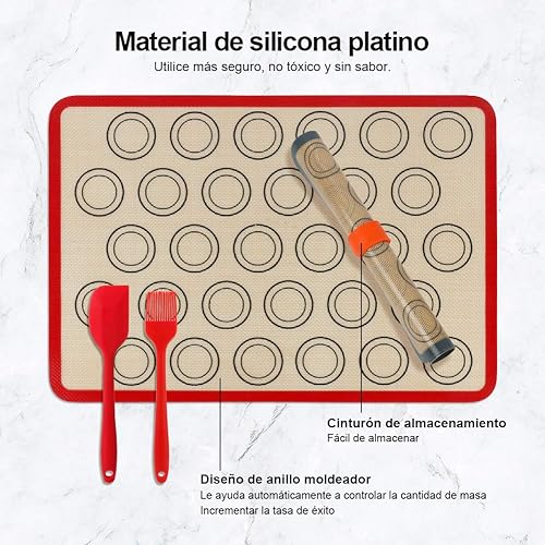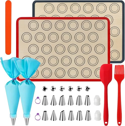 WeChip Tapis de Cuisson silicone patisserie,tapis de four macaron,kit de décoration de gâteau-sac de pâtisserie/Douilles pâtisserie/brosse en silicone/Spatule en silicone.
