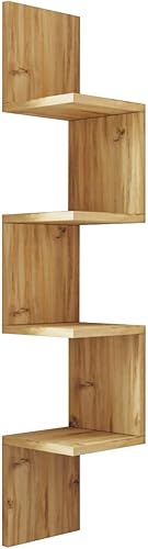 Rebecca Mobili Bibliothèque Murale, Étagère Murale d'angle, Couleur Chêne, Panneau de Particules, avec 4 Étagères, pour Salon Bureau - Dimensions HxLxP: 117 x 22 x 22 cm - Art. RE7208