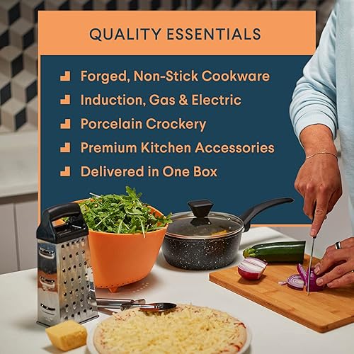 noah The Sous Chef Standard Kit de cuisine – Idéal pour les déménageurs et les étudiants – Comprend un ensemble de casseroles antiadhésives et plus encore (Vaisselle pour 4 Personnes)