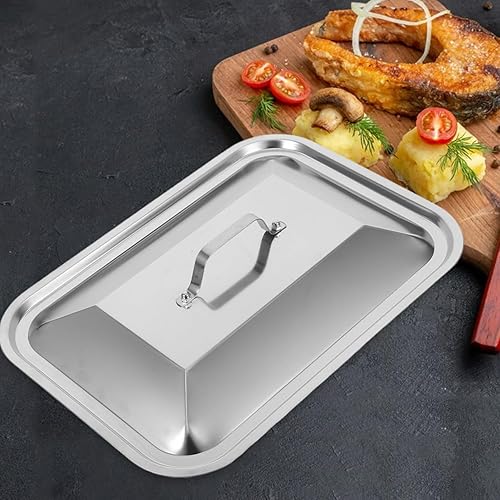 Ciieeo Couvercle de plaque de four profond avec poignée, en acier inoxydable, pour poisson, rectangulaire, pour grillades en plein air, pique-nique