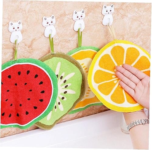 Serviettes À Main pour Salle De Bain, 4 Pcs Cuisine Serviettes À Main avec Boucle Suspendue, Serviettes À Main Rondes À Fruits Mignons Imprimés pour Salle De Bain Cuisine