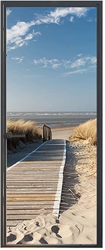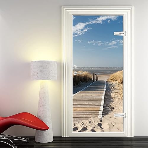 ASLKK Autocollants De Porte 3D Effet Stickers De Porte PVC Imperméable Amovible Papier Poster Peint Muraux De Porte Trompe l'oeil Papier Peint - Jetée vers La Mer (95x215cm)