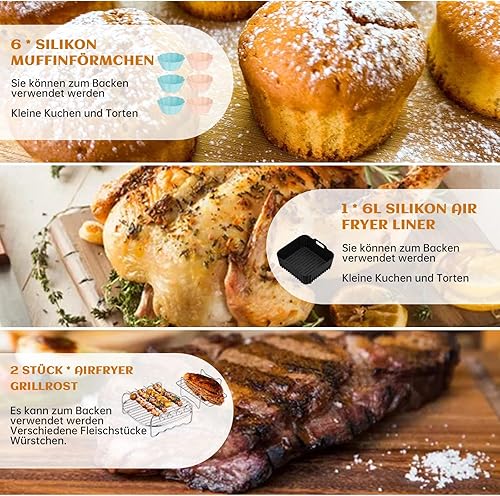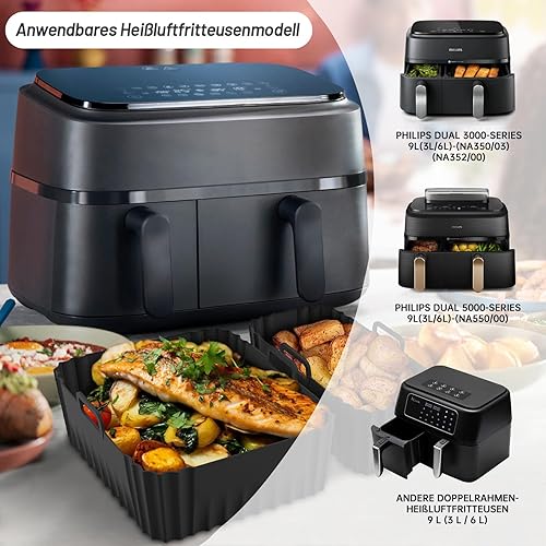 YYSWSAKY Airfryer Dual Basket Lot de 23 accessoires pour friteuse à air chaud Philips 3000/5000 Dual Basket Airfryer Dual Basket 6 l + 3 l, grille de cuisson, moule à cake en silicone