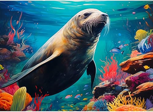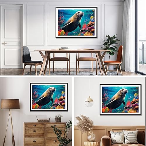 NAIMOER Phoques Peinture Diamant Adulte, Diamond Painting Animaux Complet, Diamant Painting Mer Enfants Diamant Strass Point de Croix Cristal Diamond Painting pour Home Décor 30x40cm