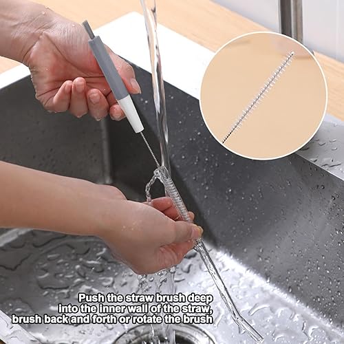 Vbnuyhim Petite brosse à bouteille, brosses à paille pour nettoyer les pailles, pas d'angles morts, nettoyeur de pipe, nettoyeur de paille – Brosses multifonctionnelles, longue brosse de nettoyage