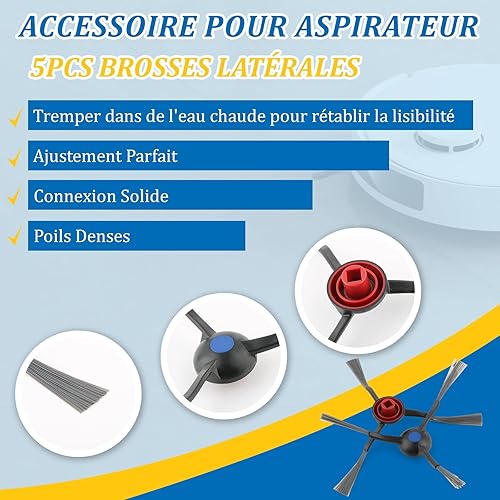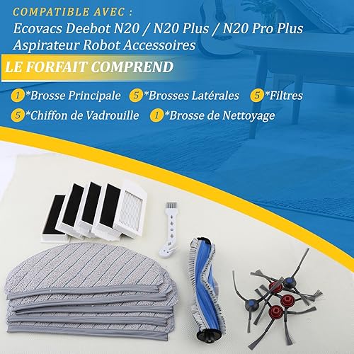 17PCS Kit D'accessoires pour Ecovacs Deebot N20/N20 Plus/N20 Pro Plus Aspirateur Robot avec 1 Brosses Principales, 5 Brosses Latérales, 5 Chiffon de Vadrouille, 5 Filtres, 1 Brosse de Nettoyage