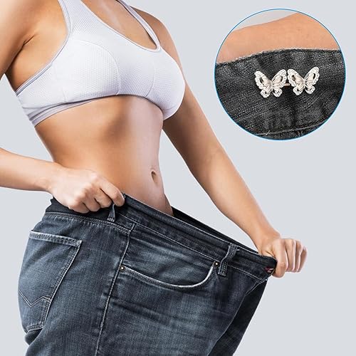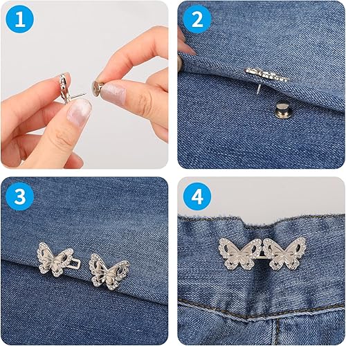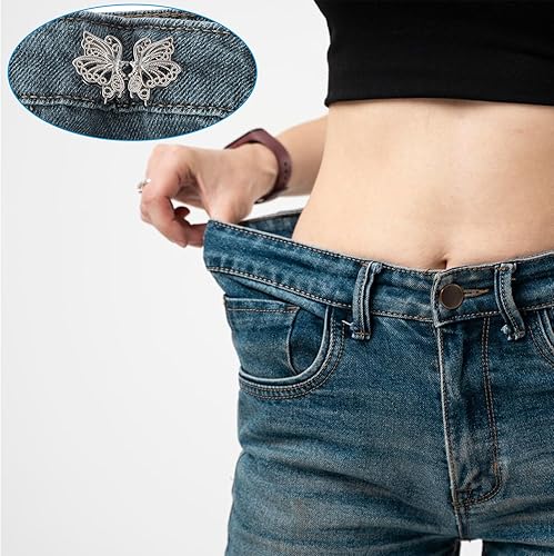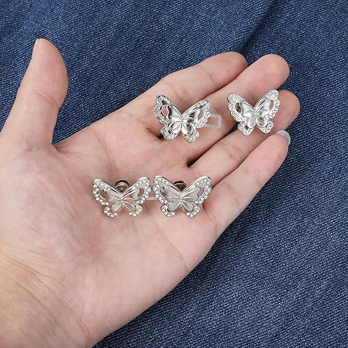 Lot de 4 paires de boutons pour resserrer les pantalons - Boutons de taille plus étroite - En forme de papillon - Clip réglable - Boucles de pantalon - Pour pantalons amples - Jeans - Jupe pour femme