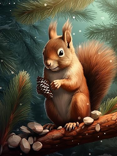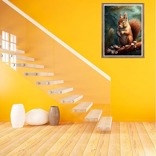 Bimkole 5D Diamond Painting DIY Kits Écureuil, Animal Broderie Diamant Kits De Broderie Au Point De Croix Strass Rond Résine Peinture Décor à La Maison 30X40cm