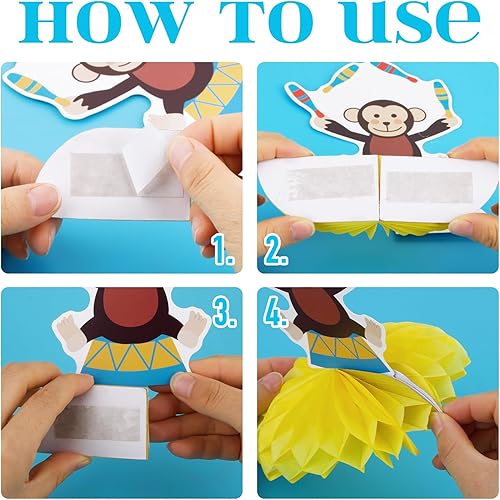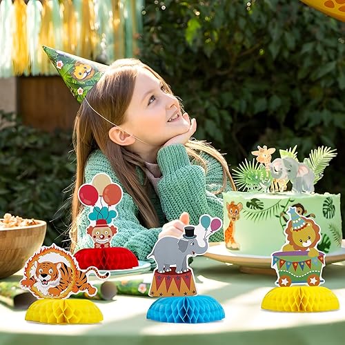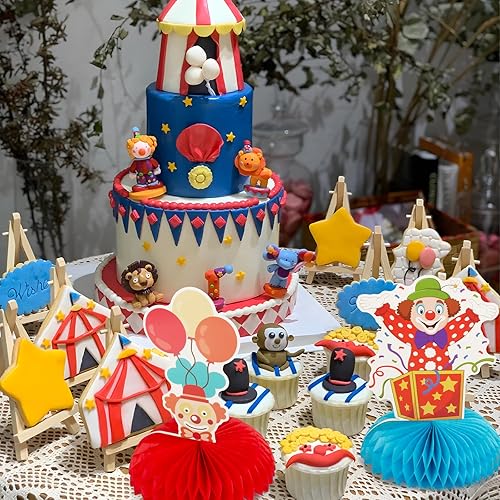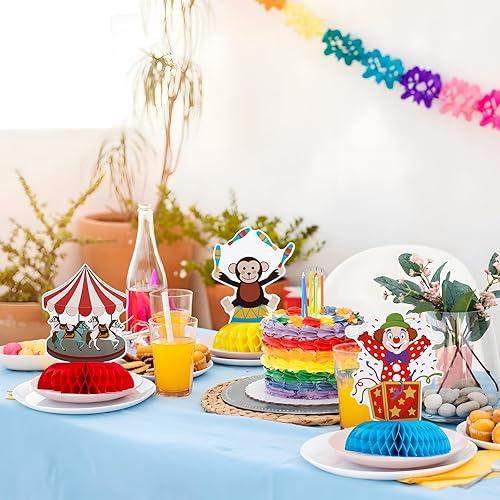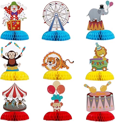 9pcs Centre de Table 3D Nid d'abeille Décoration Nid Abeille Motif de Cirque Ornement pour Centre de Table pour Carnaval Cadeau d'anniversaire pour Enfants