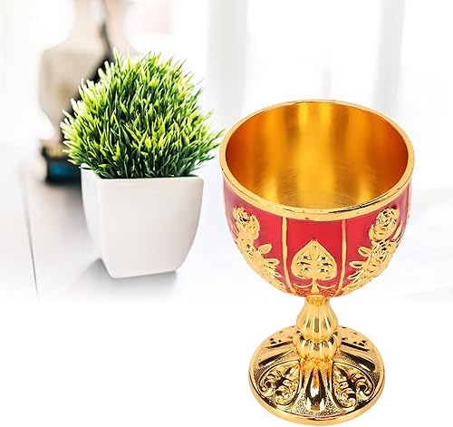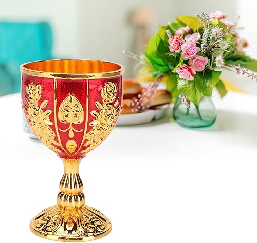 TREETDOBV Coupe dorée de 4 pouces, tasse de chalice royale, coupe vintage en métal, verre à liqueur, verre à liqueur rétro incassable, tasse à champagne pour les fêtes (rouge doré)