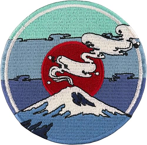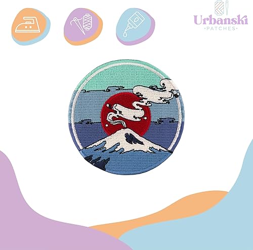 Urbanski Patch Mt. Fuji Volcan Japonais avec Soleil Rouge à thermocoller sur 9 x 9 cm | Écusson Thermocollant, Transferts Thermocollant, Appliqués à coudre