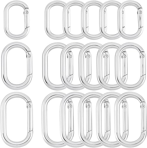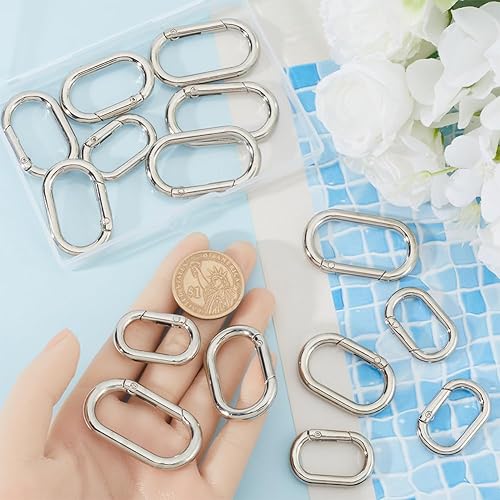 SOFPLATE 1 boîte 18 pièces Fermoir à Anneau Ovale à Ressort Mousqueton Porte Clés en Alliage D'Argent Boucle de Porte Clés Ouverte Lisse Petits Anneaux de Porte pour Sac à Main Fabrication de Bijoux S