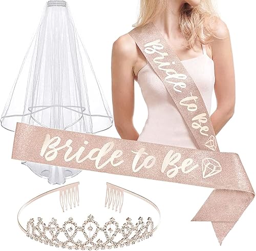 Bymivofun Bride to Be Tiara Sash Veil Set, Accessoires de Fête de Poule avec Bride to Be, pour Mariée, Enterrement de Vie de Jeune Fille, Soirée Entre Filles, Mariage, Douche Nuptiale