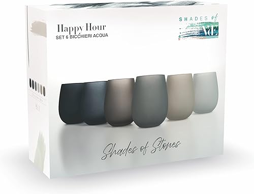 Villa d’Este Home Tivoli Happy Hour Stones Lot de 6 verres à eau Frosted en verre 500 ml