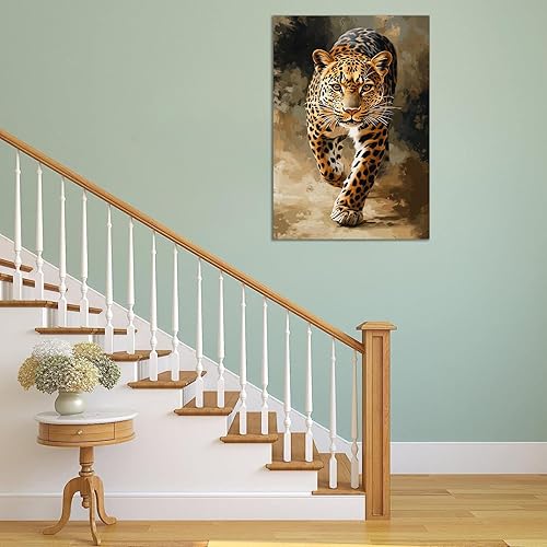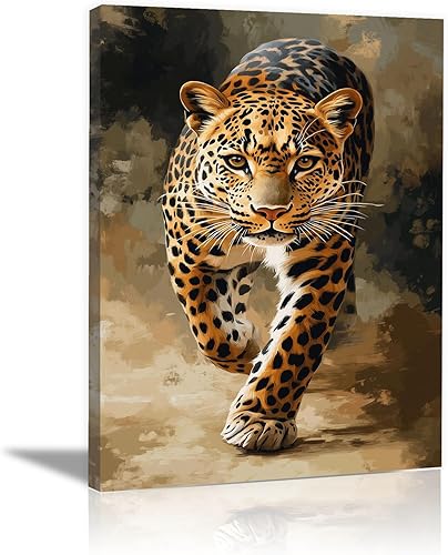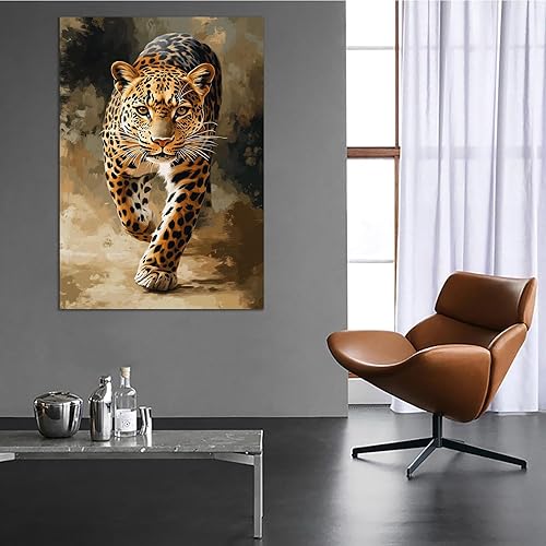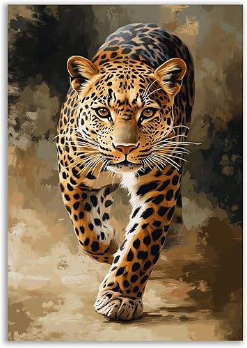 TZKRWRH Moderne Impression Sur Toile Léopard, Léopard marchant Poster Animal Léopards, Affiches d'art Sur Toile Et Images d'art Mural à Imprimer - 70x100cm Sans cadre(Marron)