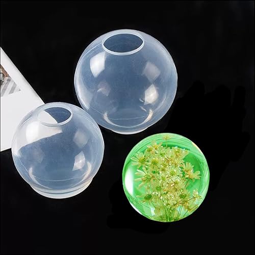 FineInno 5 Pcs Moules Résine Sphère,Ball Resin Mold,Moules Silicone Boule Ronde,Moules Epoxy Cristal Fabrication Bijoux Pendentif Artisanaux