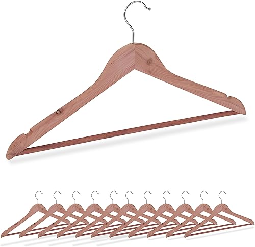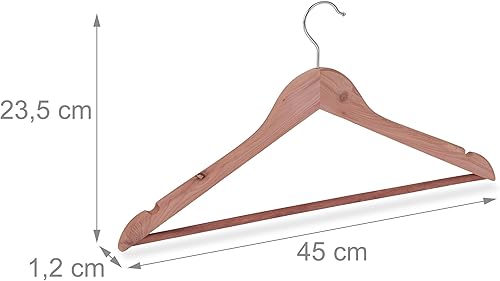 Relaxdays Cintres en Bois de cèdre, Lot de 12, Protection Anti-Mites pour penderie, Barre à Pantalon, Nature