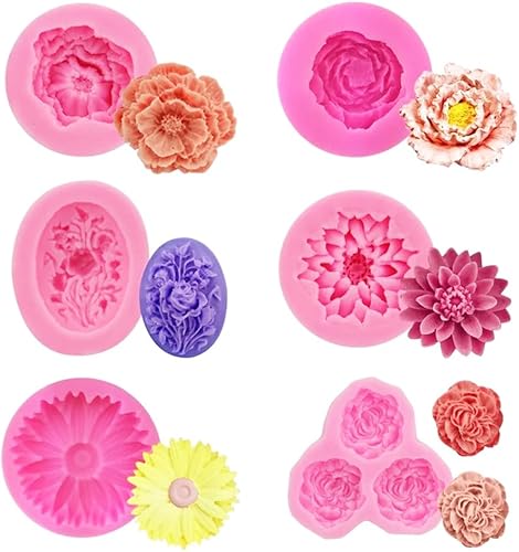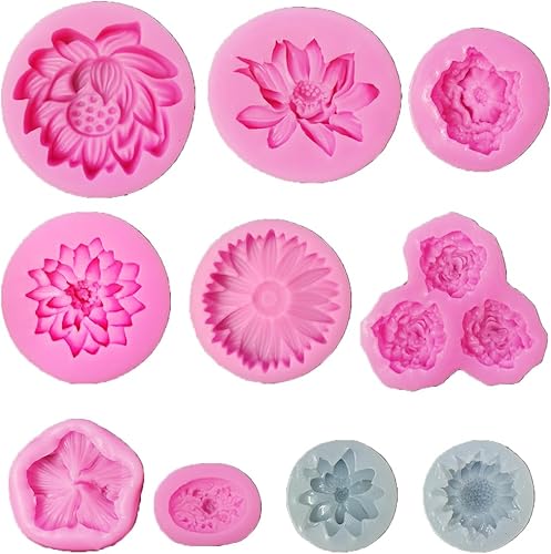 10 pcs fleurs moules en silicone, BOSOIRSOU moule de cuisson antiadhésif moule à fondant pour la décoration de gâteau de petit gâteau gommeux chocolat bonbons fabrication d'argile polymère