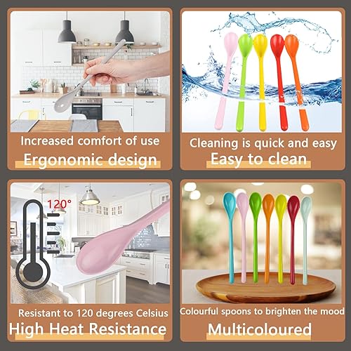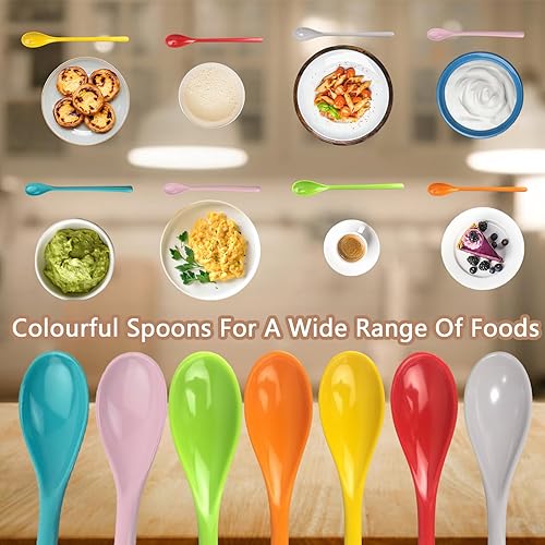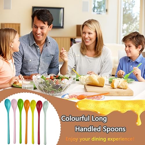 Brateuanoii 7 Pièces Cuillères En Plastique Colorées, Coloré Cuillère En Plastique Réutilisable, Cuillère à Dessert En Mélamine, Longue Cuillère à Café En Mélamine, 19cm (7 Couleurs)
