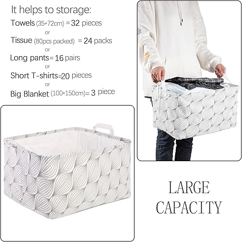 LessMo Boite de Rangement Tissu Grand, Organisateur de Panier d'étagère de Rangement en Tissu Rectangulaire Pliable avec Fermeture à Cordon, Couche Intérieure Imperméable