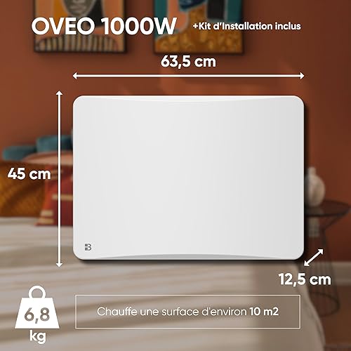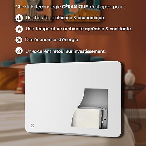 BESTHERM - Radiateur électrique fixe à inertie sèche céramique 2000W plug & play Bestherm OVEO horizontal blanc