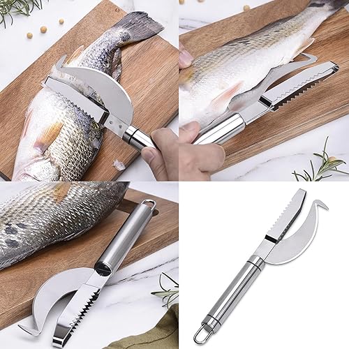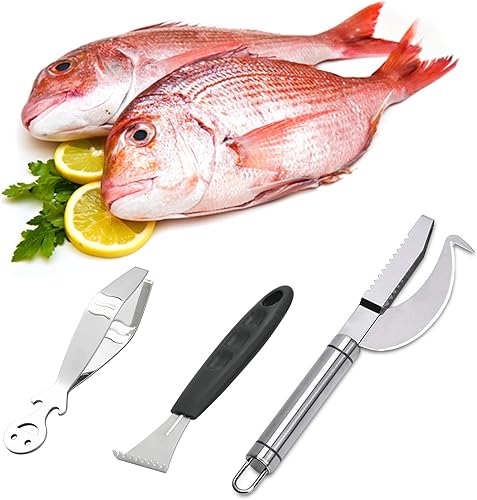 ZAHD 3 Pièces couteau à écailles de poisson 3 en 1 ecailleur poisson ecailleur poisson professionnel stainless fish scale remover pince a desareter le poisson Pour Cuisine,Restaurant