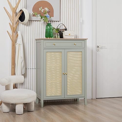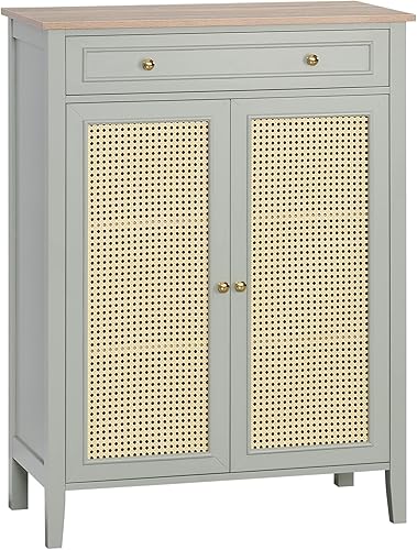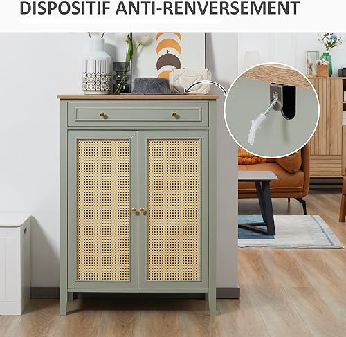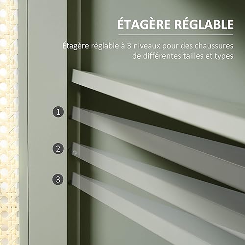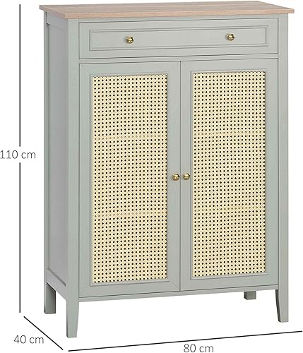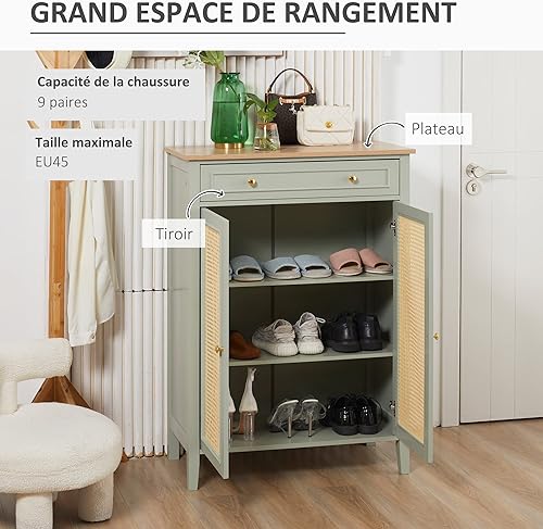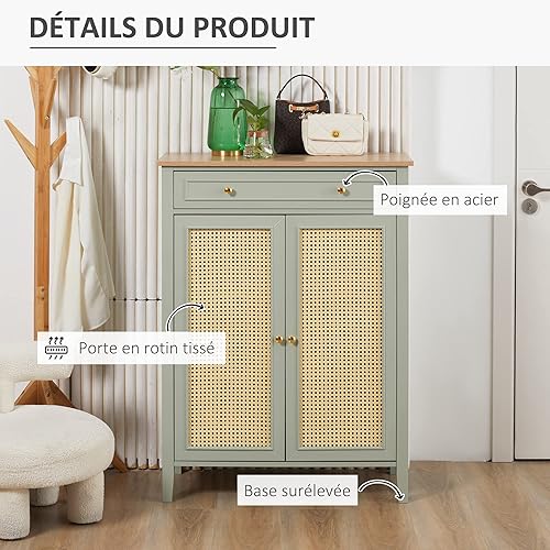 HOMCOM Meuble à Chaussures Meuble de Rangement à Chaussures Meuble d'entrée avec 2 Portes Effet cannage tiroir 80 x 40 x 110 cm