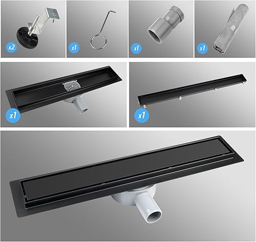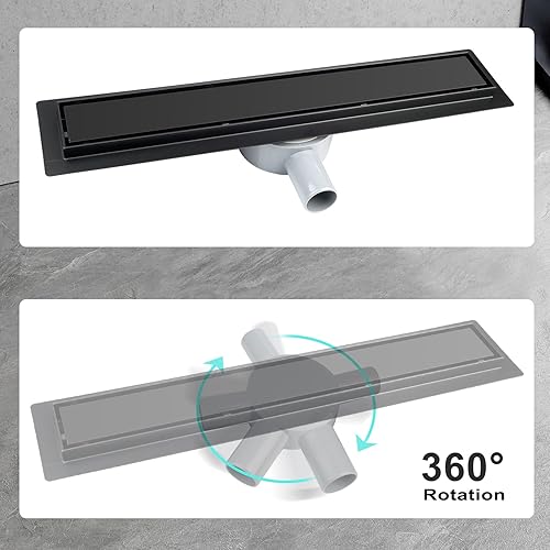 iYueMps Caniveau de Douche 70 cm, 2 en 1 Caniveau Couche Italienne Extra Plate, Acier INOX, avec 362° Siphon, Bloqueur D'odeurs et Filtre à Cheveux,Drainage Rapide