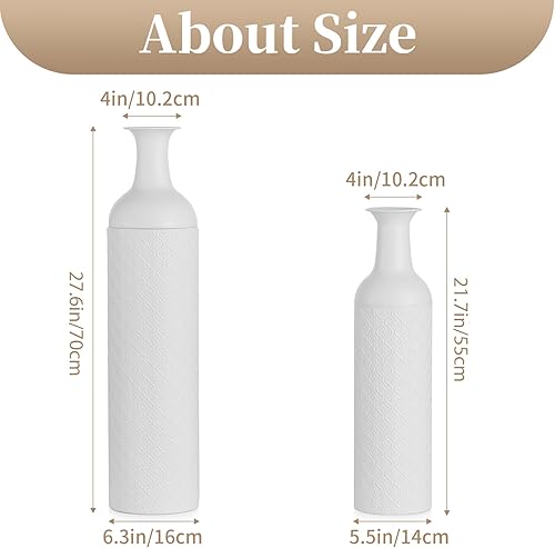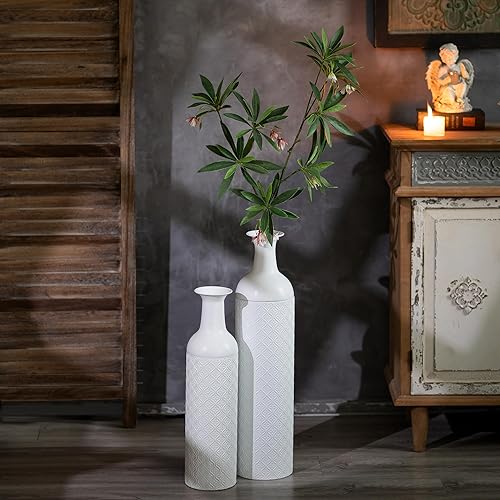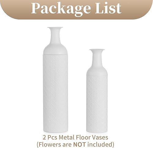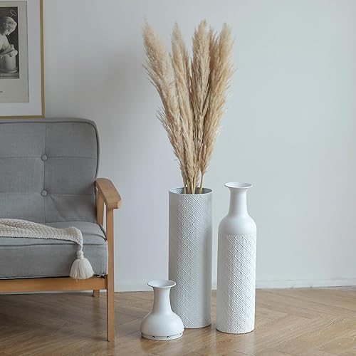 Sziqiqi Grand Vase a Poser au Sol: 70/55 Cm Grands Vases de Sol Set of 2 - Blanc Vase Haut Sol Boho pour Pampa - Metal Vase au Sol pour Salon Chambre Coin À La Maison