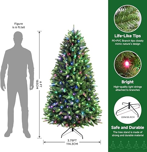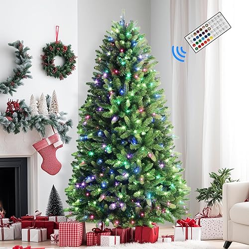Alupssuc 180CM Sapins de Noël Artificiel Lumineux avec 400 LED Multicolores, Contrôle à Distance, 1423 Branches, Support Métallique Pliable, pour Maison, Fête, Magasin, Décoration de Noël, 6ft
