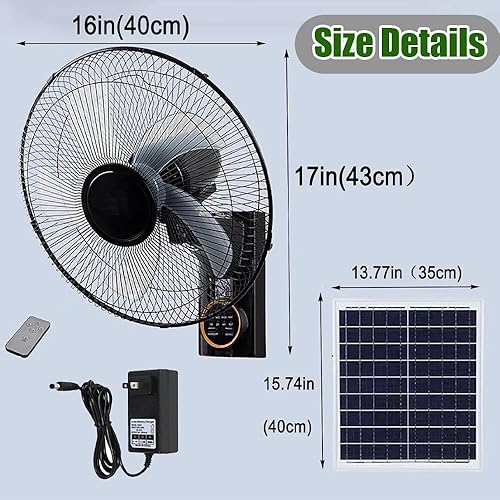 MYYMKJYXGS Ventilateur mural solaire 40 cm, silencieux et oscillant, avec télécommande, 3 vitesses, minuterie, 5 pales, inclinaison réglable, for maison, chambre, bureau, salon, garage