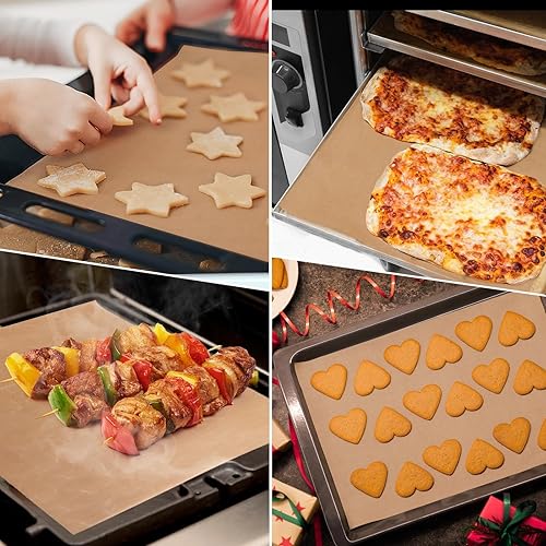 5 Pièces Réutilisable Papier Cuisson Reutilisable 40 x 30 cm Découpables Tapis de Cuisson Feuilles de Cuisson Durables Feuille de Cuisson Reutilisable pour Four Grill Barbecue Électrique Gaz (Marron)