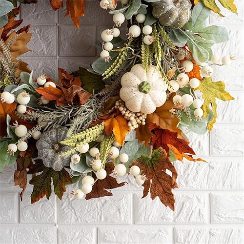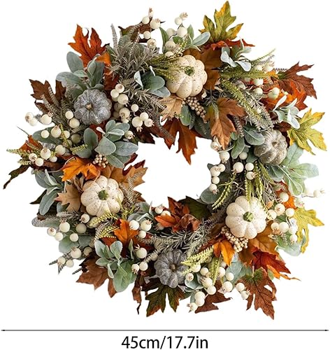 Couronne de citrouille d'automne toute l'année pour porte d'entrée, couronne d'automne artificielle, couronne de porte d'entrée d'automne, décoration de ferme familiale et couronne de Thanksgiving