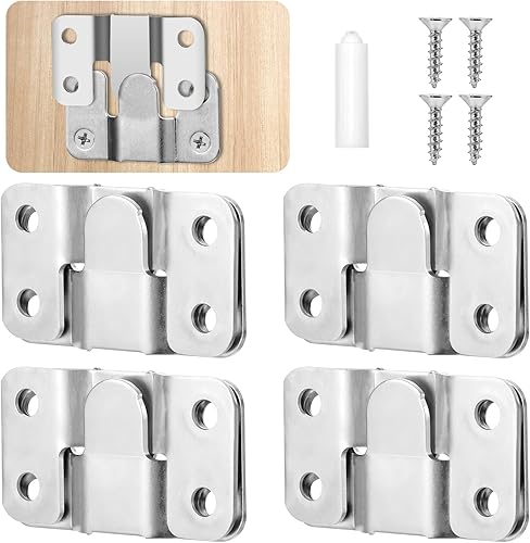 Dimeho Lot de 4 paires de supports encastrables encastrables avec vis pour tête de lit, supports de montage mural, grande boucle de suspension, connecteur de meubles, connecteurs de canapé sectionnel