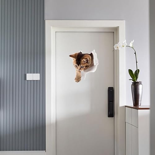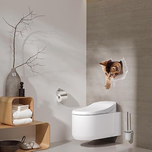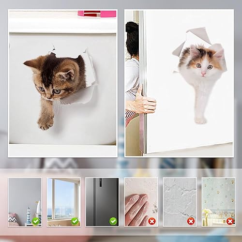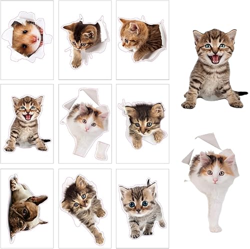 Zfseyuh 9 Pièces Stickers Chat 3D Muraux Mignon - Autocollants Chiens pour WC, Frigo - Décoratifs Amovibles Imperméables pour Salle de Bain