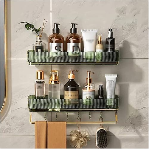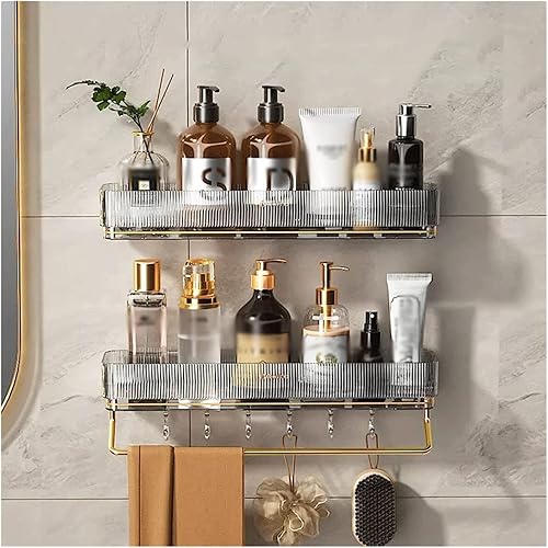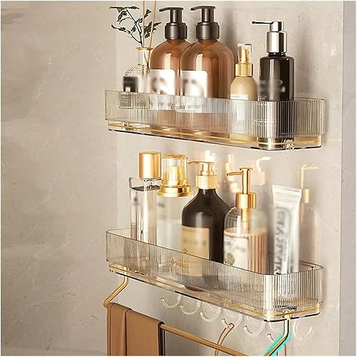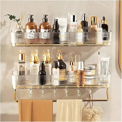 Étagère de rangement en plastique Étagère de rangement simple for articles de toilette avec porte-serviettes et crochet Étagère de rangement en plastique transparent à double fixation murale ( Color