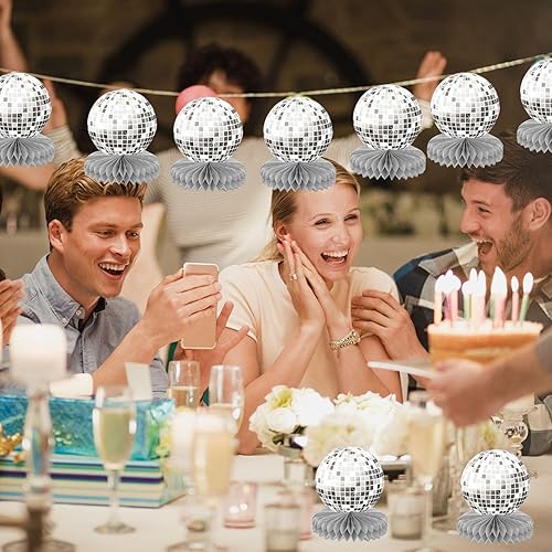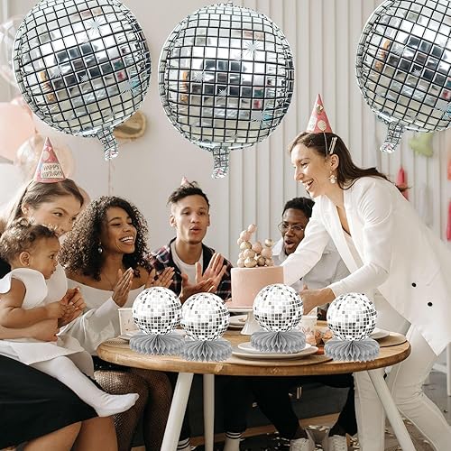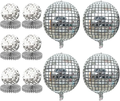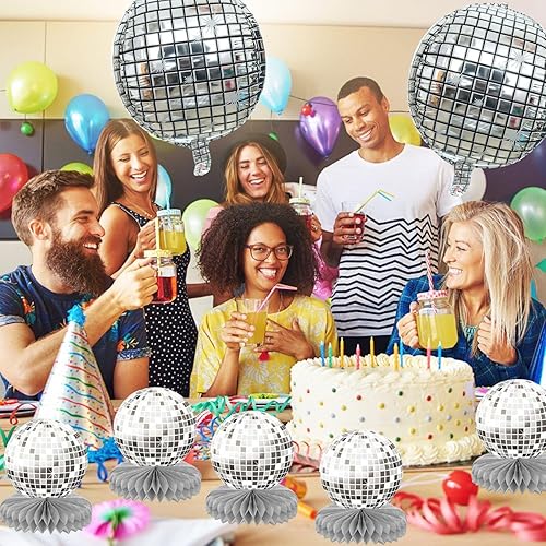 GTYHH 6 Pièces De Décorations De Table Disco en Nid d'abeille Et 4 Pièces De Ballons Disco, Décorations Rétro, Décorations De Fête, Décorations Scintillantes