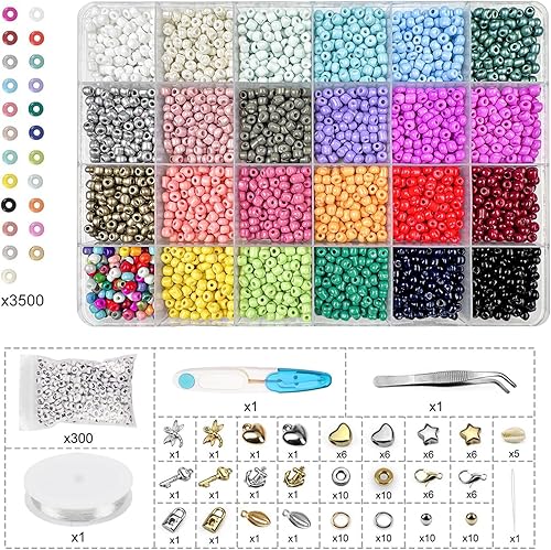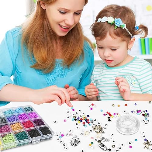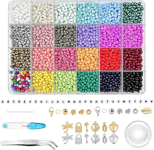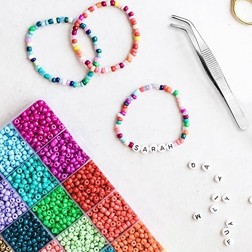 Magrimaxio 4000 PCS 4mm perles pour bracelet,perle lettres, kit perles avec fil pour bracelet perle, coffret de perles, Ciseaux et Pince à épiler, pour Fabrication de Bijoux, Colliers, DIY Artisanats