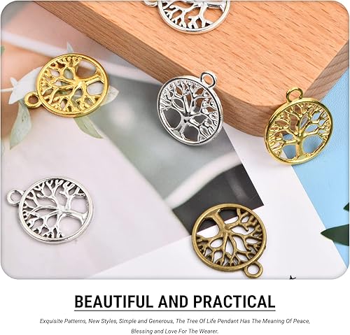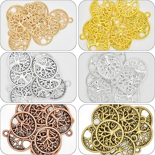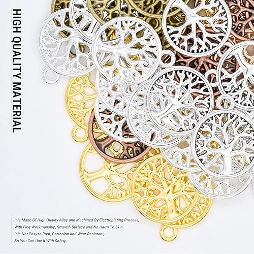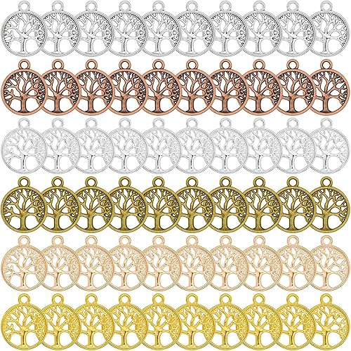 Skyzone Breloques arbre de vie pour la fabrication de bijoux, 60 pièces de couleurs assorties en métal pendentif arbre de vie plat rond pour bricolage, fabrication de collier, bracelet, décoration