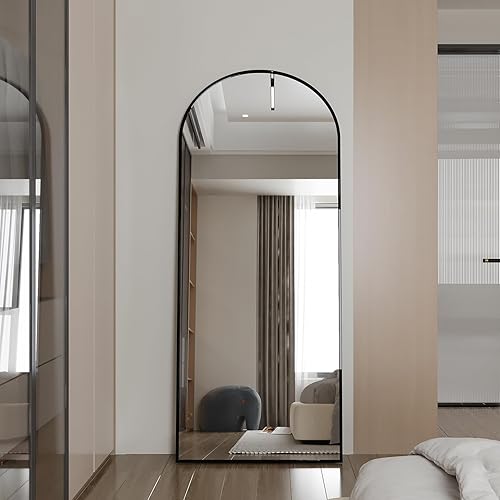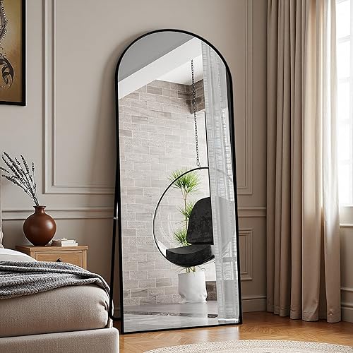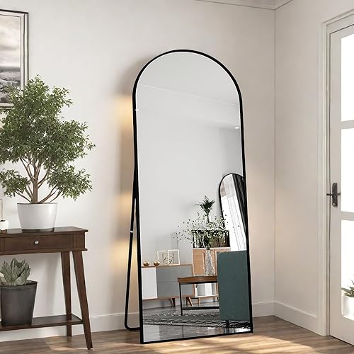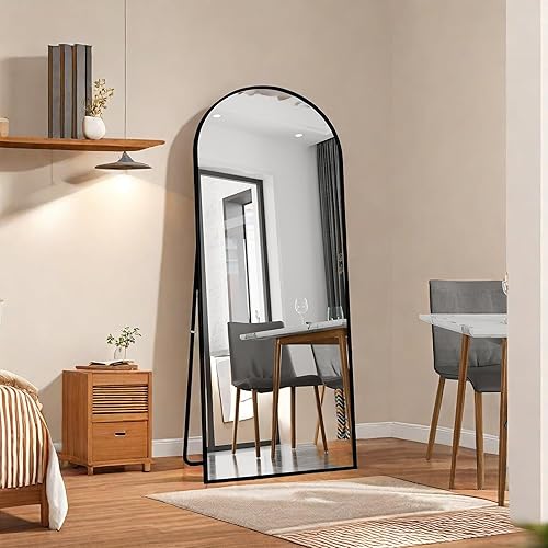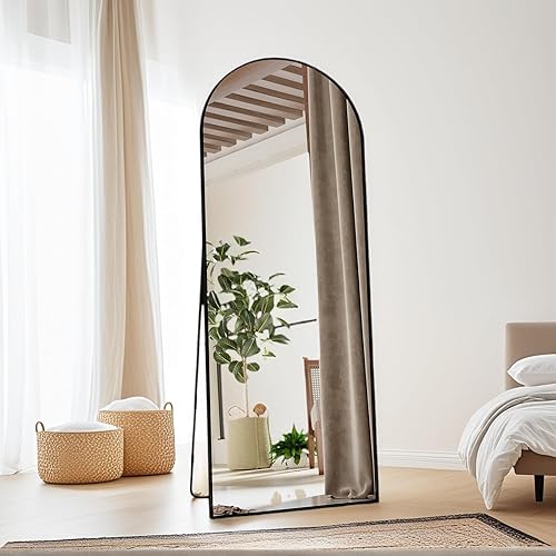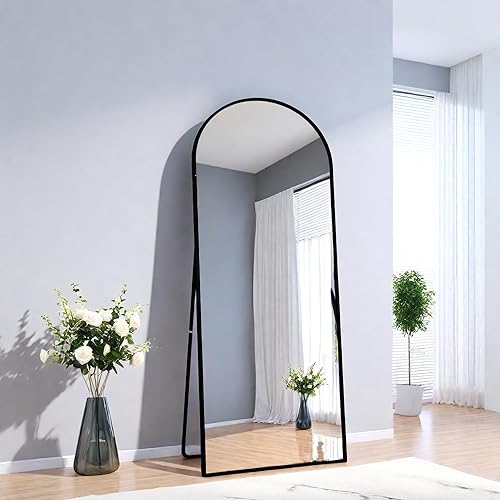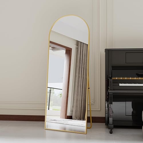 Miroir Pleine Longueur arqué 165x60 cm, Miroir sur Pied avec Support, Grand Miroir de Sol Mural, miroir Plein Pied, Suspendu, Cadre en Alliage d’Aluminium, pour Chambre, Salon (Or, 165L x 60l cm)