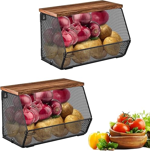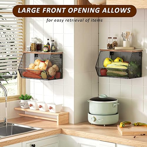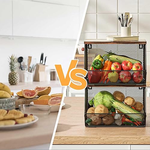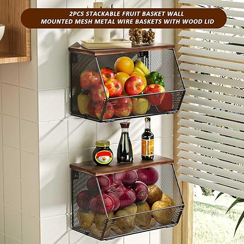 Zjyufy Panier à fruits empilable pour plan de travail de cuisine, panier à fruits suspendu en maille métallique murale, lot de 2 organisateurs de cuisine pour le stockage des fruit et légumes